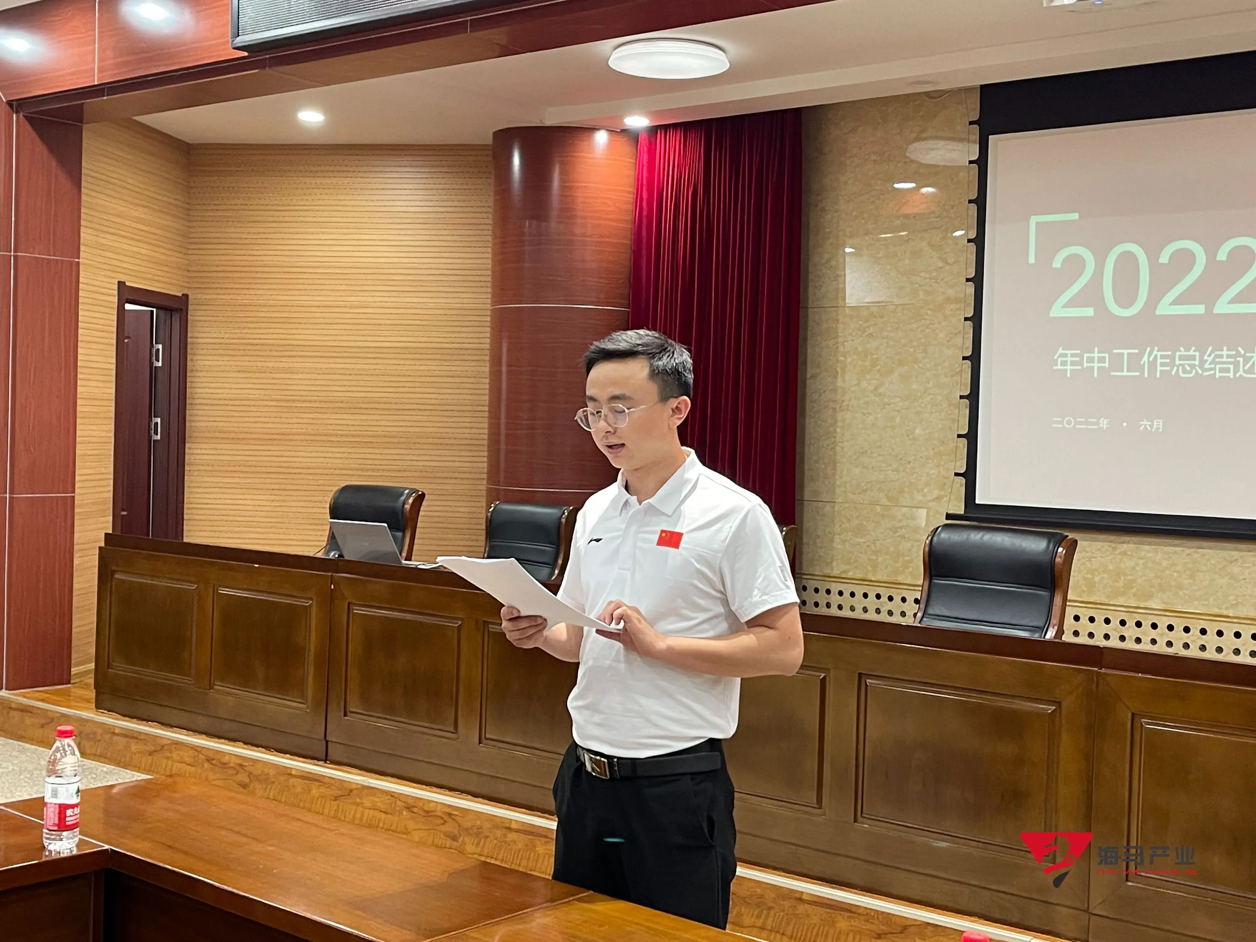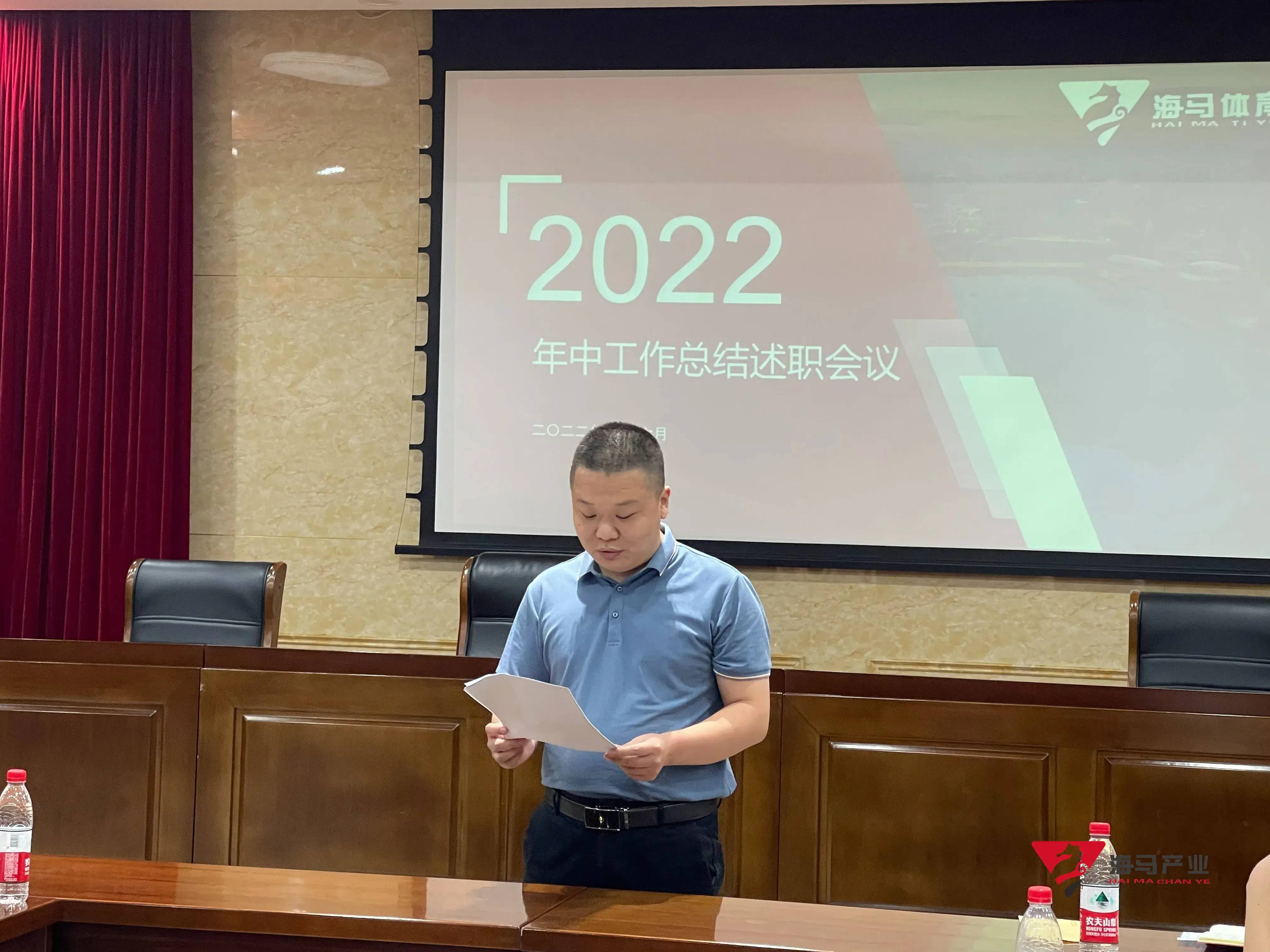 2022年6月29日下午,中欧体育文化产业集团在山东省体育中心二楼会议室召开年中工作总结述职会议,会议对上半年工作成果进行了总结汇报,并就下半年重点工作进行部署。总经理王海民出席了本次会议。会议由综合管理部负责人王永健主持。